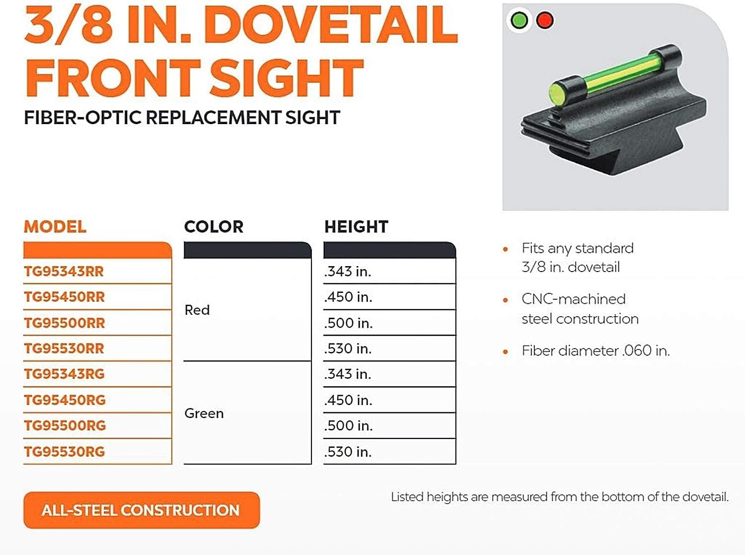 - Style: 3/8-Inch Dovetail Front Rifle Sight