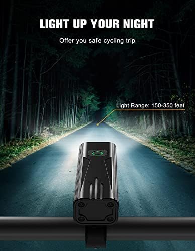 【Multiple Lighting Modes】:The bicycle headlight can switch between 3 modes and 5 modes by long press button 3s. (Mode 1: High – Low – Strobe; Mode 2: High – Medium – Low – Strobe – SOS). Taillight has 5 lighting modes (constant, flash, SOS, strobe, breath). This bicycle lights set is essential for riding.
