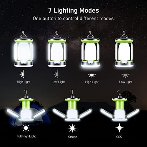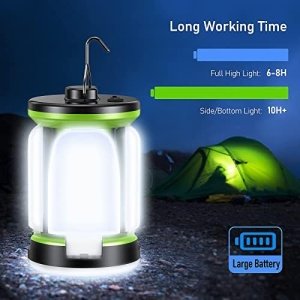 【7 Lighting Modes】This camping light has 7 modes to choose from: Strong Side Light – Weak Side Light – Bottom High Light – Bottom Low Light – Full Strong Light – Full Strobe – SOS. One-click changes to fully meet your needs.