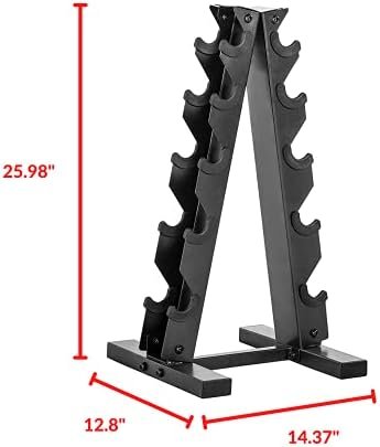 Space-saving design – Carbon a frame design of this rack maximizes floor space by storing dumbbells in an “A” shape, or vertical fashion; Easily access and store dumbbells