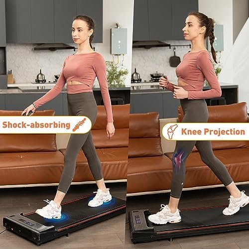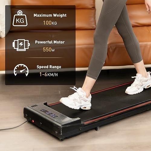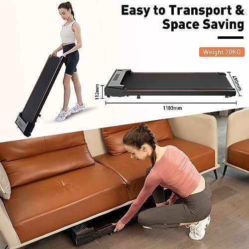 [Compact Size & Lightweight Design] The size of the walking treadmill is 1183*490*113mm, and the compact size allows it to be stored in any desired location. Such as under the sofa, under the bed or at the bottom of the wardrobe.