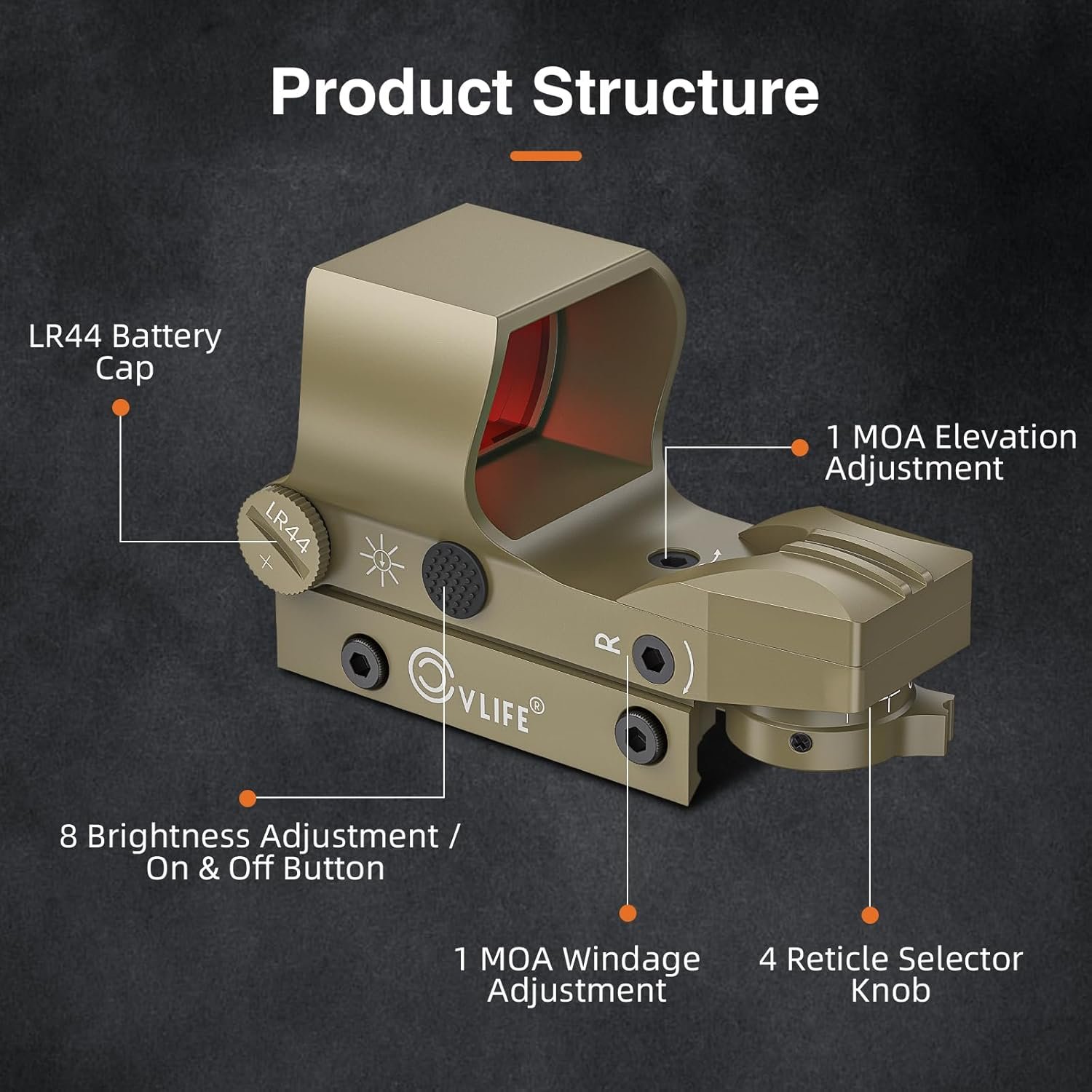 - Our red dot is designed for easy and intuitive use, with 8 brightness settings that allow you to adapt to changing lighting conditions.
