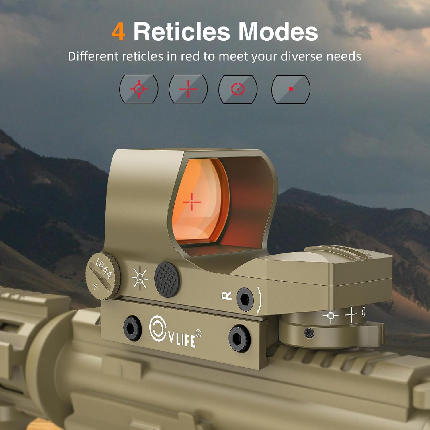 - Our red dot sight features a 40mm reflex lens aperture and four selectable reticles, providing you with a wide field of view and the ability to customize your using experience. Parallax corrected & unlimited eye-relief.