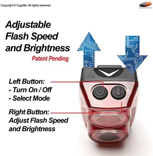 One of a kind extremely bright 350 lumen tail light stands out day and night on busy streets. Patent pending adjustable flash speeds lets you maximize motorist awareness with its unique and easy to use 2 button control