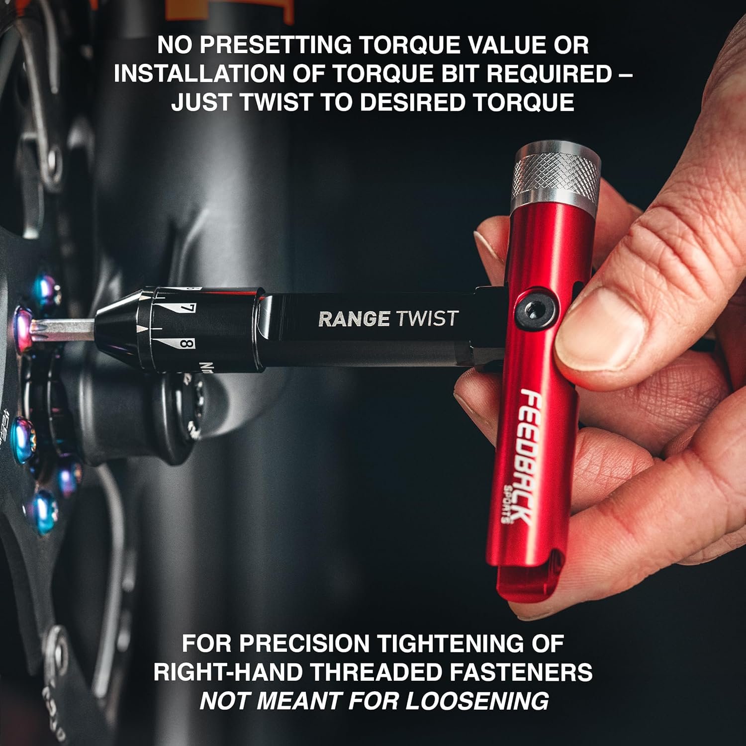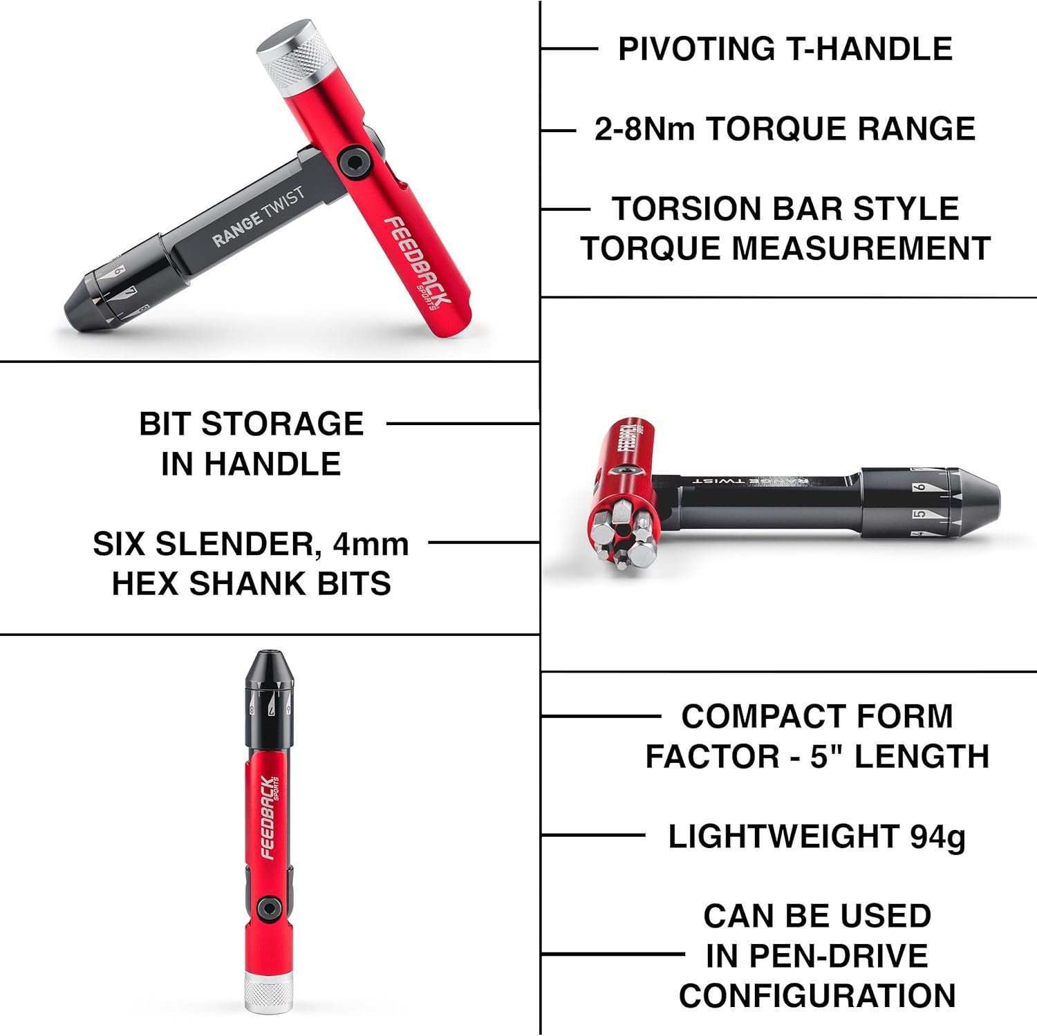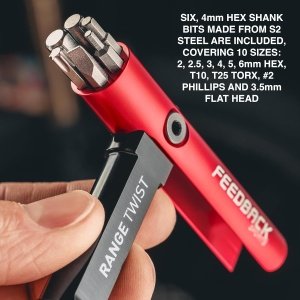 Feedback Sports | Range Twist Torque Wrench (2-8Nm) | Includes 10 Fastener Sizes in 6 S2 Steel Bits | For Bicycle Maintenance and Repair
