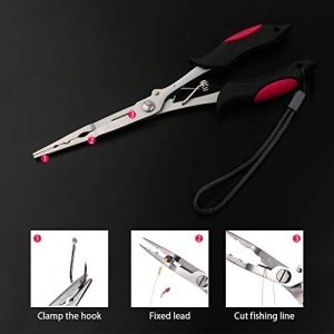 MULTI-FUNCTION RLIER: This fishing pliers can be utilized as hook remover, braid line cutter, fish gripper, weights crimper and split ring pliers; Could cut braid line, steel wire, nylon wire, carbon line and so on