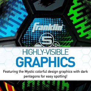 Franklin’s Mystic Soccer ball is made to official size 4 and weight and designed for training and competitive scrimmages. The high gloss PVC cover with electrifying styling is precision stitched to provide durable abrasion resistance to withstand the rigors of youthful training. The dark pentagon panels enhance the spotting that help provide kick targeting. Foam cushioned to provide responsiveness and control in play. The long lasting air retention bladder will ensure the ball remains at pressure on the pitch. Ready to roll, this ball is designed for everyday play. An inflation pump is included so that you can inflate the ball and play right away.