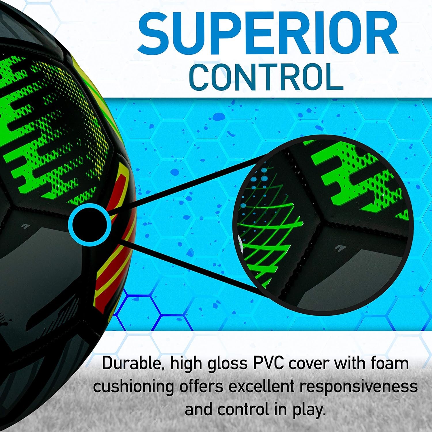 FOAM CUSHIONING: A layer of foam cushioning underneath the cover gives the ball a soft, responsive touch for complete control and softer headers