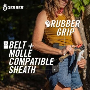 This easy-to-carry saw uses triple ground saw teeth, meaning the teeth align in a way that gives you a consistent and quick cut with every pull. That means you can cut log after log without getting tired. – The chrome-plated SK5 Carbon Steel has added corrosion resistance, so you can use it in any weather without worrying about it rusting overnight. – An 8” blade locks into two different positions for any awkward or tricky cut you may need to make. – A rubber grip and aluminum lock button keep everything safe and comfortable in your hand. – Comes with a belt and MOLLE-compatible sheath with a ferro rod loop, so you can always have it handy.