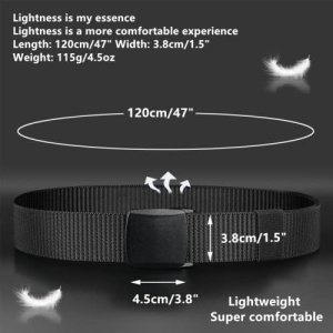 ADJUSTABLE WEBBING BELT: 100% Nylon web belt,Width:1.5”(3.8cm), Length:47”(120cm). Holeless design belt and removable buckles allow you to trim the extra length if it is too large for you. Perfect custom belt for your family.