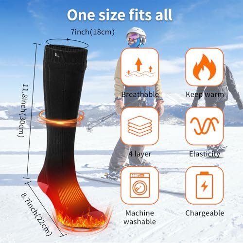 Heated Socks for Men and Women, 4000mAh Electric Rechargeable Heating Thermal