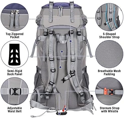 【Comfortable Support Design】 The HOMIEE 60L hiking pack is ergonomically designed with a PE support panel on the back, providing enough support to make you more comfortable when using the pack. Adjustable sternum and waist straps are designed to help distribute the weight. The padded and breathable back and shoulder straps provide good support while ensuring ventilation and breathability.
