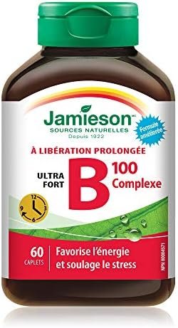 Jamieson B Complex 100 Timed Release is a high potency formula providing you with essential B vitamins over the course of the day. This vitamin B complex helps your body to convert carbs, proteins and fats to energy and naturally relieve symptoms of stress.