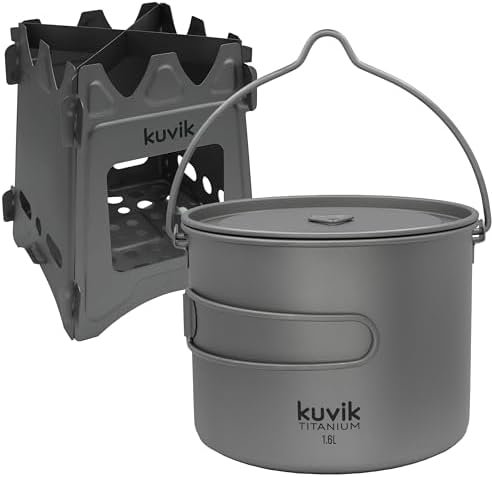 Kuvik Titanium Wood Stove & 1600ml (54 oz) Titanium Pot with Bail Handle Bundle