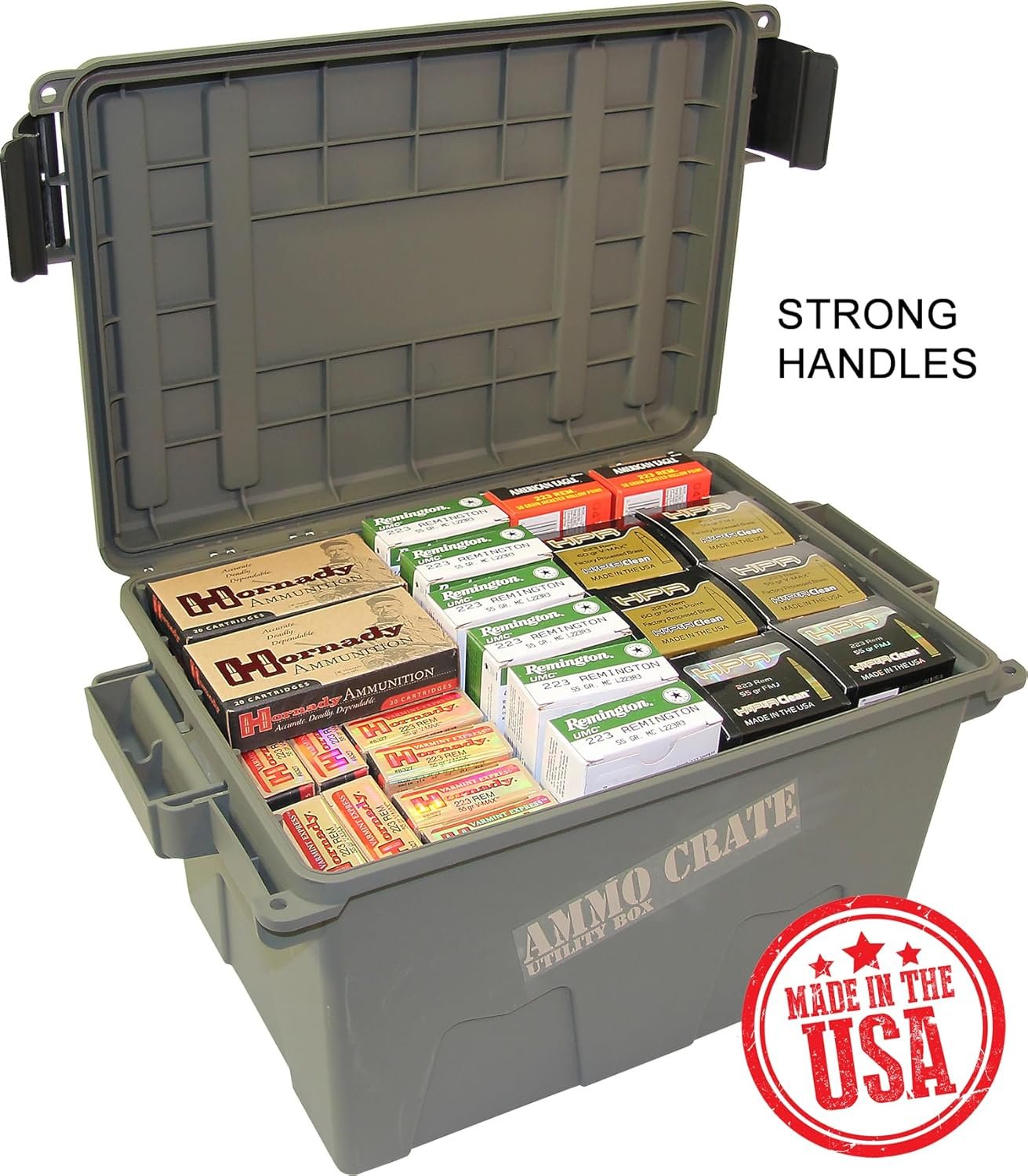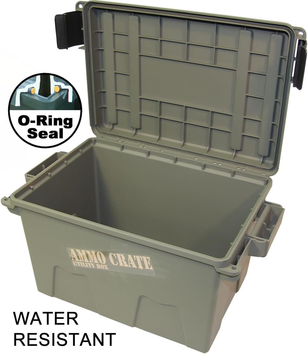 MTM ACR7-18 Ammo Crate Utility Box, Ammo, survival or hunting gear storage, O-Ring seal for water resistant dry storage, Double padlock tabbed for security, Carries 65lbs of gear, Army Green