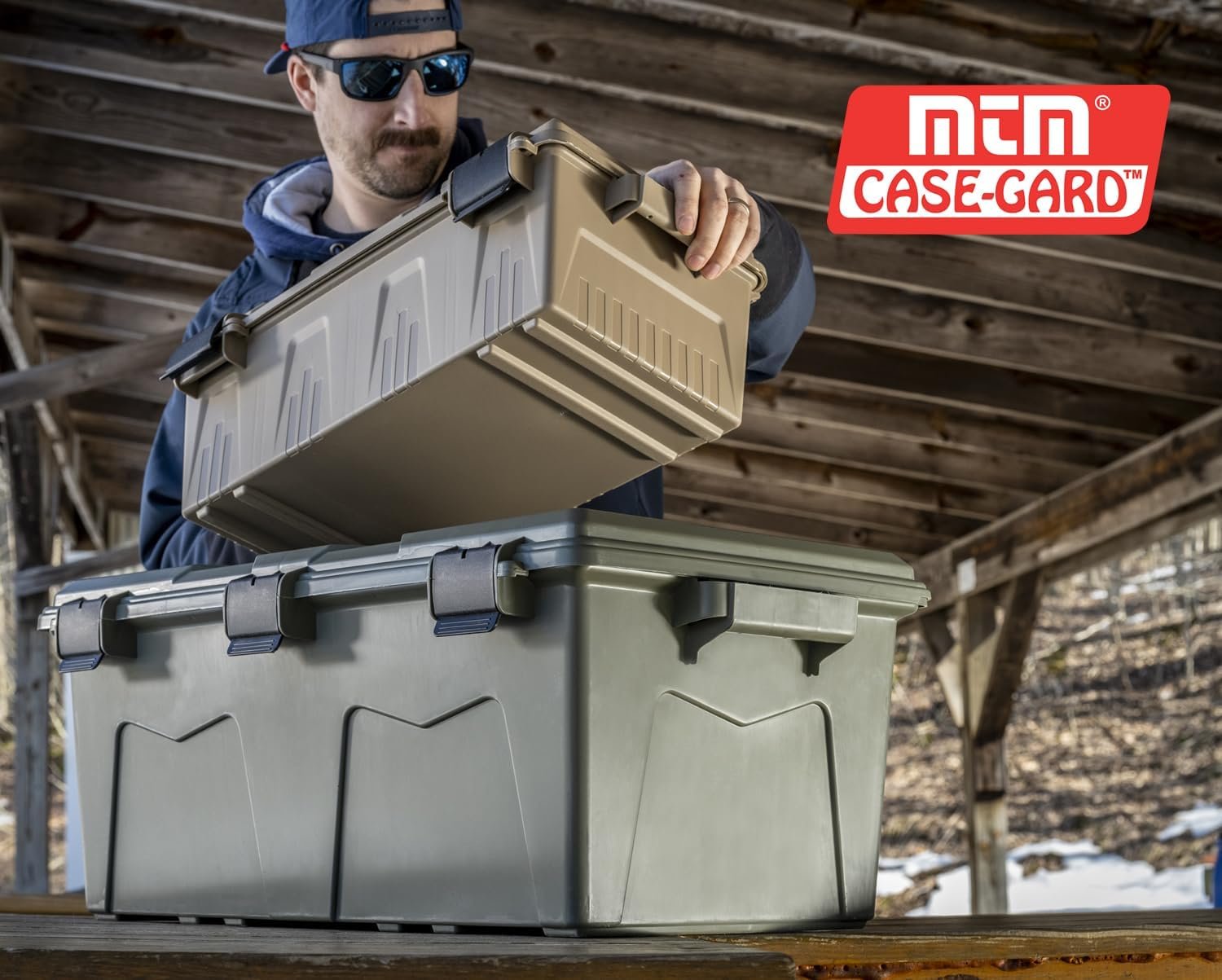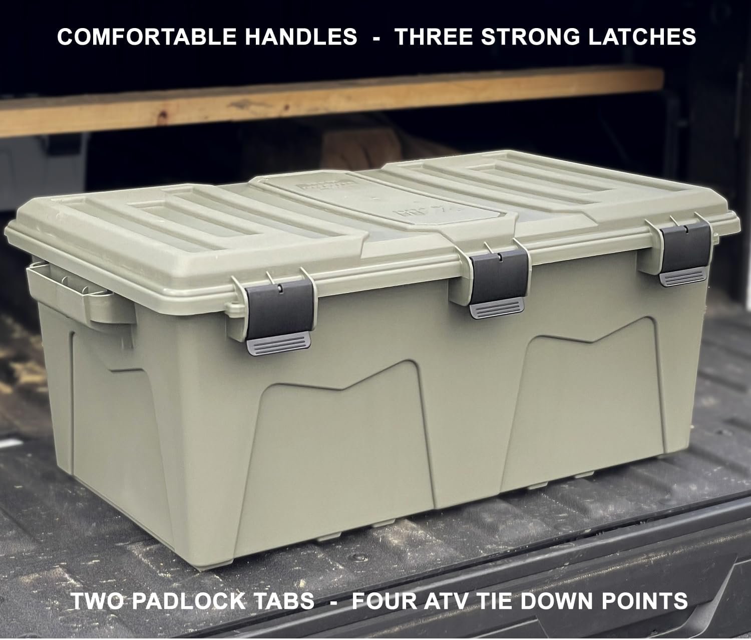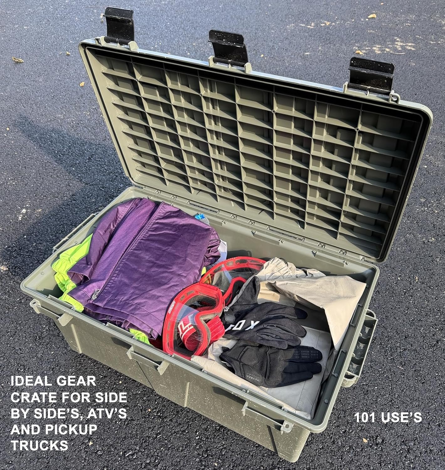MTM ACRG18 Gear Crate Utility Box, Water Resistant Gear Dry Storage Box for the Field, Lockable Dry Storage Case, 52 Quart, Stackable, Secures Hunting Shooting Gear, 101 Uses, USA Made, Army Green