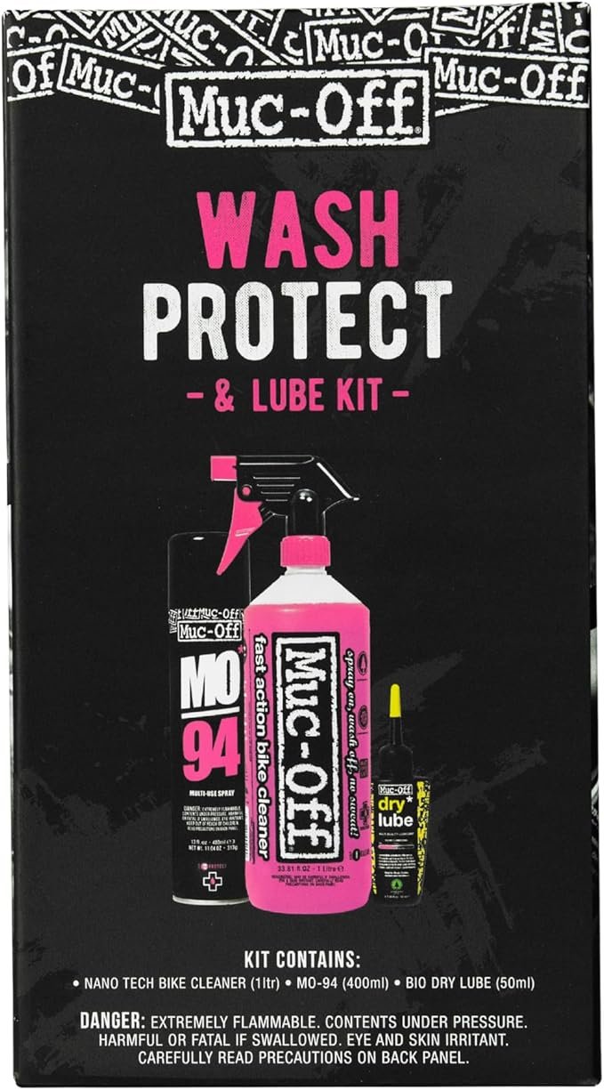Muc-Off Wash, Protect & Lube Kit | Complete Bike Cleaning & Maintenance Kit | Includes Nano Tech Bike Cleaner, MO-94 Protect Spray & Dry Chain Lube