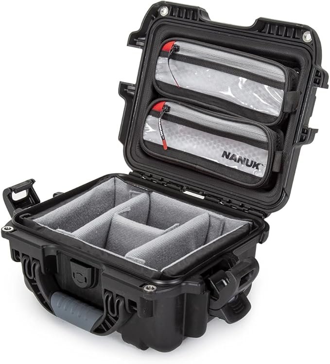 Nanuk 905 Pro Waterproof Hard Case with 2-Pocket Lid Organizer and Padded Divider, Black