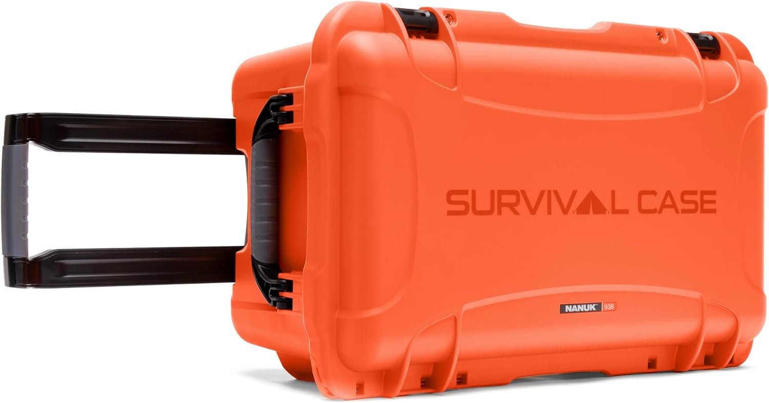 NANUK 938 Survival Gear Storage Case w/Wheels and Lid Organizer-for Preppers, Survivalist, First Aid and Emergencies – Waterproof, Dustproof, and Impact Resistant-Empty (Orange)