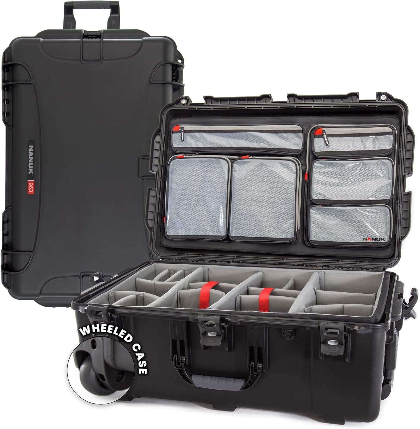 NANUK 963 Pro Photo Kit – Waterproof Travel Camera Hard Case with Padded Dividers and Wheels, 32.5″ x 21″ x 12.3”, Dustproof and Impact-Resistant, Ideal for Heavy Loads – Black