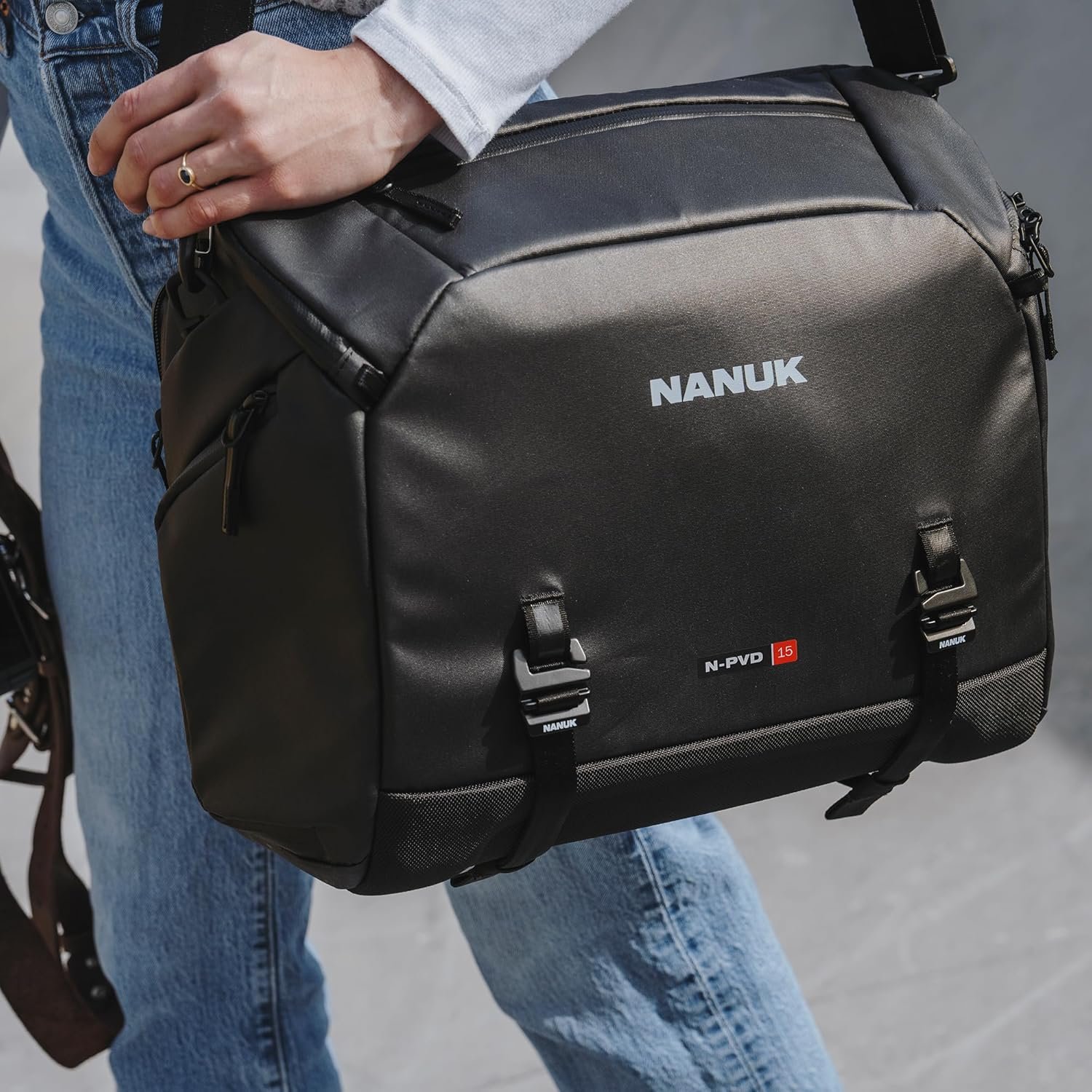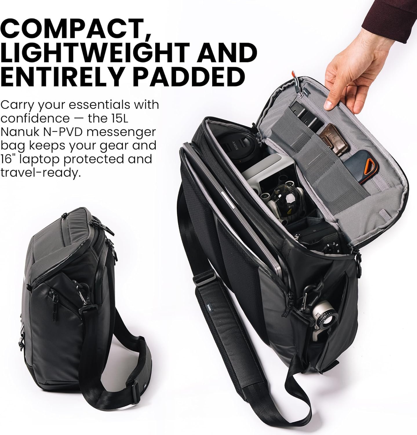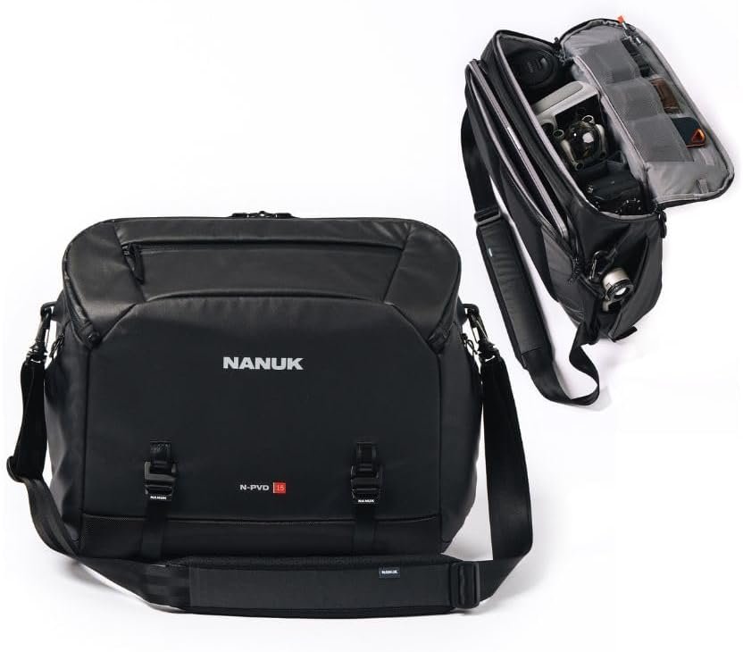 NANUK N-PVD 15L Camera Messenger Bag for Photographers – Lightweight & Hightly Water Resistant – Hardshell Design Fits 1 Camera Body, 2 Lenses, Drone, Tripod, 16″ Laptop, & More