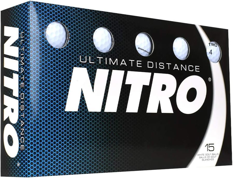 The Nitro Ultimate Distance Golf Balls have a Solid 2-piece titanium core which maximizes the energy transfer from club head to golf ball. Aerodynamic and symmetrical dimple design increases lift and decreases drag for higher, longer shots. grteat stop/sticking ability, exceptional spin control with long distance off your woods. Dupont Lithium Surlyn cut proof cover for long term durability. Developed for all levels of Golfer, from beginning golfer to professional golfer to elite golfer. Nitro Ultimate Distance Golf Balls Conform to USGA rules. About Nitro Golf At Nitro Golf, one of the fastest growing golf companies in the industry, we believe in building quality product without compromising performance. Today’s golfer demands high-performance products that give results. Nitro Golf does just that! And it won’t break your bank! For the last 25 years, Nitro’s DNA has remained consistent – listen to the customer, build performance product, be reasonable, be an experience. Some in the industry say… serious balls for serious golfers, Nitro says “affordable balls for today’s golfer.” OUR MISSION To provide the highest performance golf equipment at an affordable price With Nitro Golf, everyone can afford to play!
