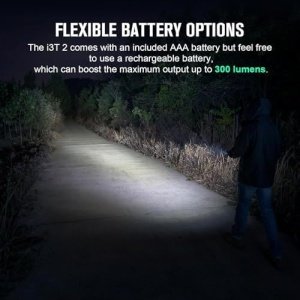 [Versatile Power Choices]: The I3T 2 runs on a standard AAA alkaline battery. What’s more, you can use a rechargeable battery to boost output up to 300 lumens