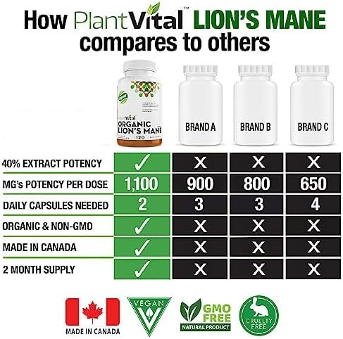 PlantVital Lions Mane Supplement – Lions Mane Mushroom Capsules- Lion Mane