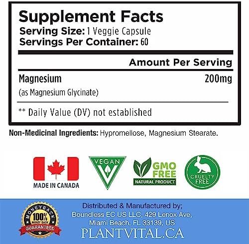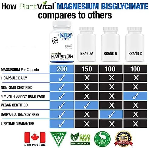 HIGH POTENCY. PlantVital High Potency Magnesium Bisglycinate contains 200mg of magnesium per capsule, so you only take ONE capsule per day – unlike most brands that require two. This means our 120-capsule bottle lasts you 4 months. Purity, potency, and value!