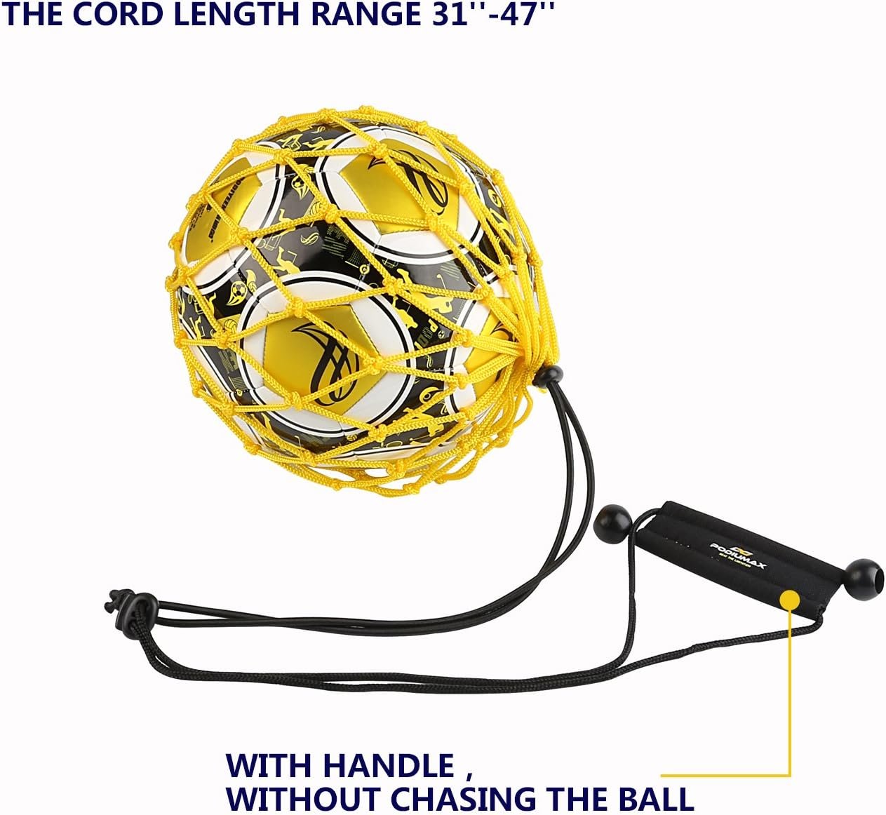 PodiuMax Handle Solo Soccer Kick Trainer with New Ball Locked Net Design, Soccer Ball Bungee Elastic Training Juggling Net (Fits Ball Size 3, 4, 5)