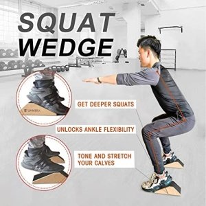 [SQUAT WEDGE BLOCK ]:squat wedge for heel elevated squat during the squat. improve leg strength and hip flexibility while improving your squat form to avoid muscle strain and knee injuries during squat training. squat wedge for weight lifting, calf stretcher, yoga wedge, and great for stretching and balance workouts.
