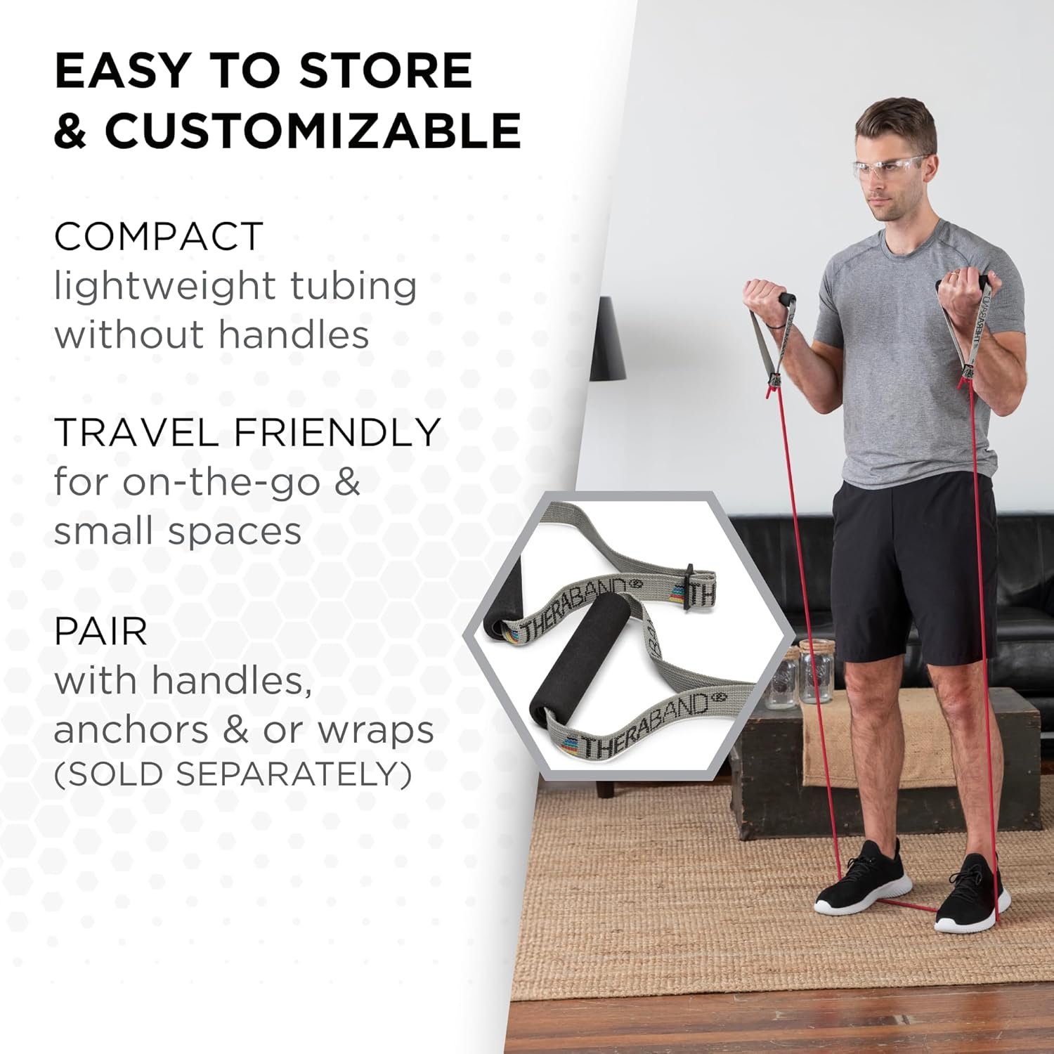 THERABAND Latex Resistance Tubing, Red, Medium Level 2, 100 ft Roll, Professional Grade Resistance Band for Exercise, Upper and Lower Body Workouts, Cut-to-Length, Color-Coded Levels