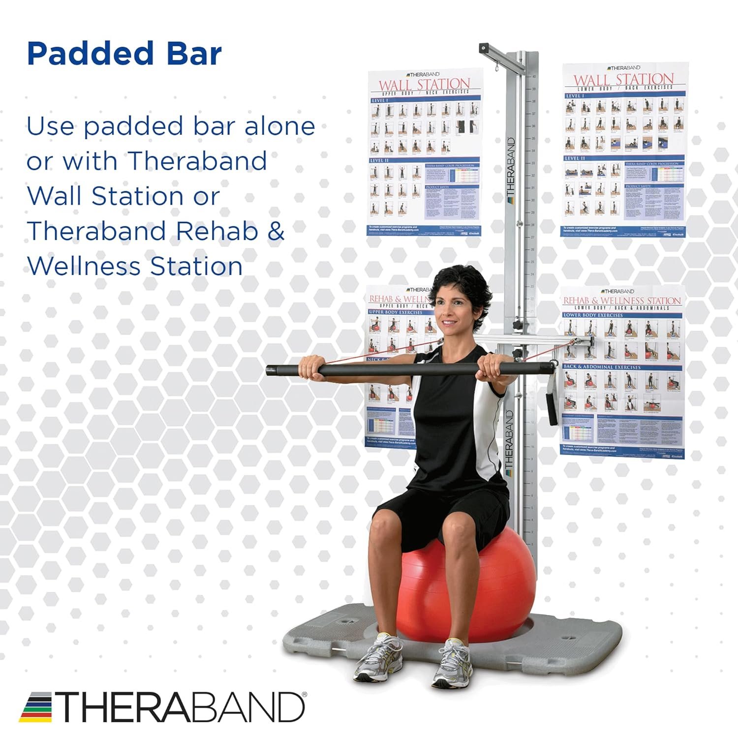 THERABAND Resistance Band Padded Bar, Attachment for Resistance Bands and Tubing, 3 Foot Bar with two “D” Ring Connectors for Wellness Station, Pilates, Yoga, Home Workouts without Weights