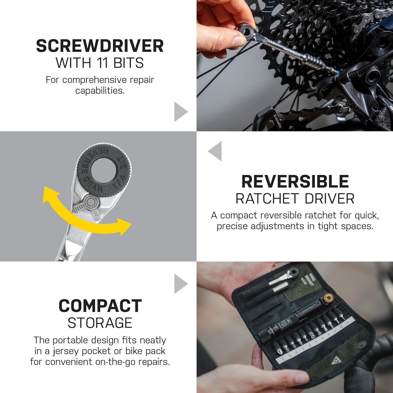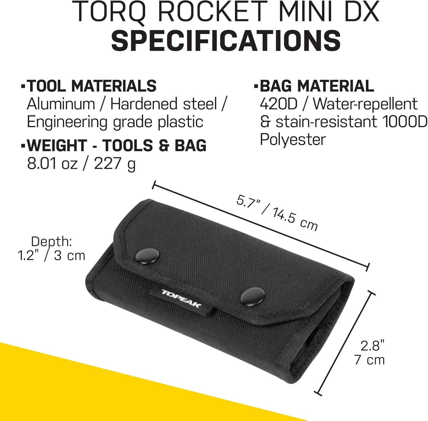 Topeak Torq Rocket MiniX Torque Wrench – 1–6 Nm Adjustable Ratcheting Bike Tool with 11 Bits, Tire Lever & Carry Case – Compact Precision Torque Wrench for Road, MTB & Gravel Bikes