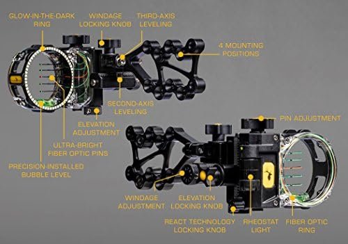 Trophy Ridge React Pro 5 Pin Bow Sight – Lighter, Stronger, More Reliable – Tool Less Windage and Elevation Adustability, 2nd/3rd Axis Leveling, Adjustable Click Light, Glow Ring