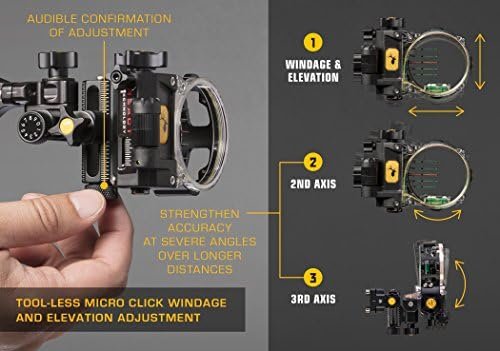 Trophy Ridge React H5 Bow Sight – 5 Pin Sight, Tool Less Windage and Elevation Adustability, 2nd Axis Leveling, Adjustable Click Light