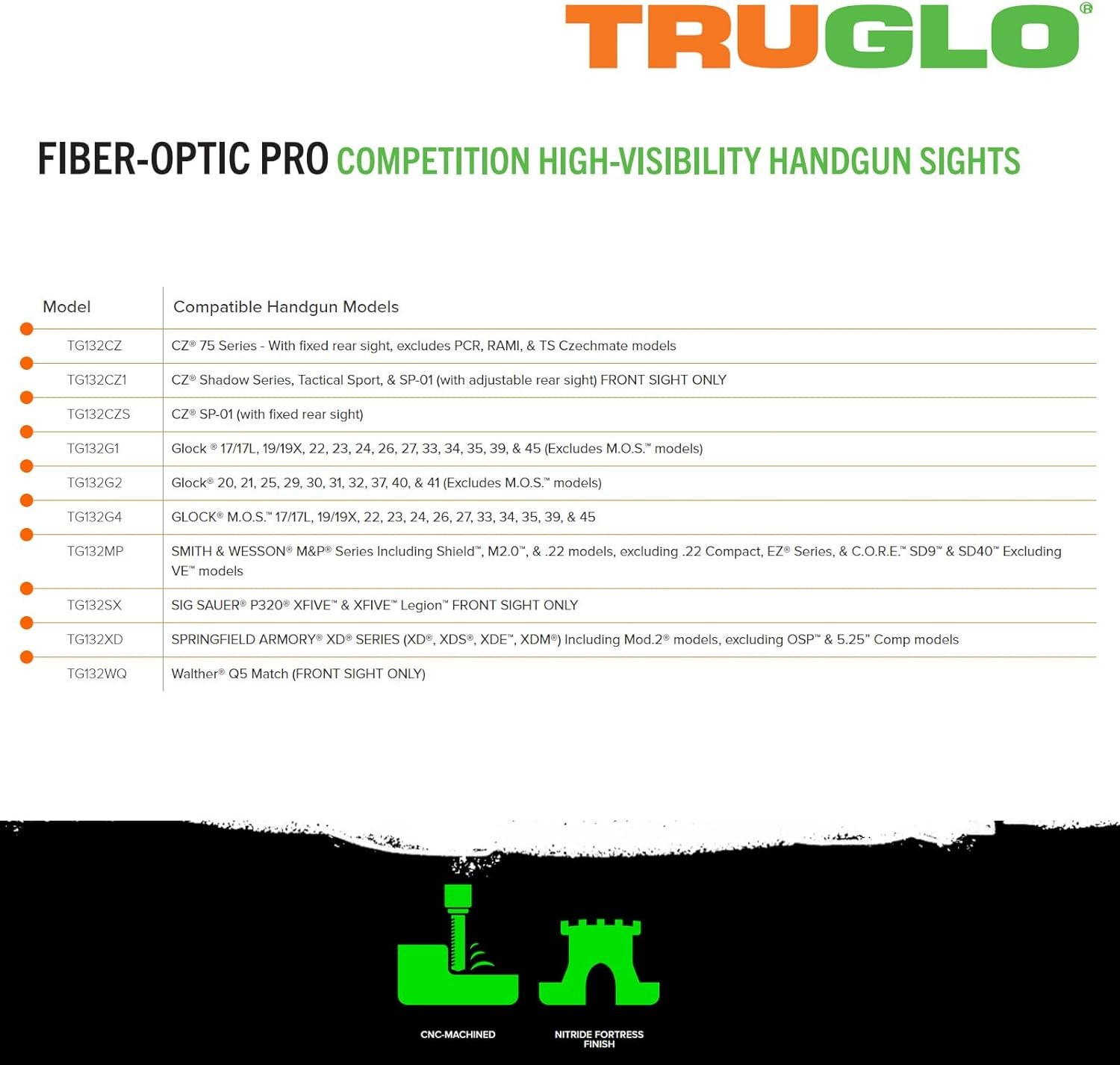 • Model Name: Fiber-Optic PRO Competition High Visibility Handgun Sights