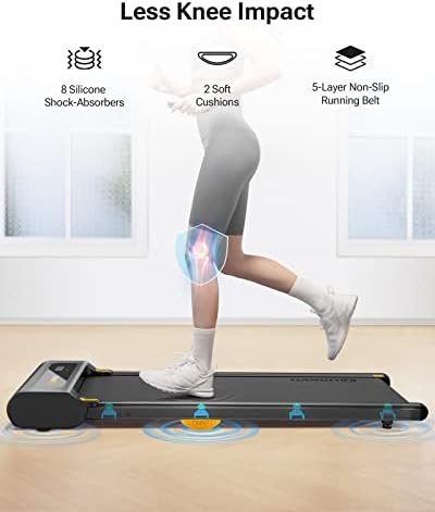 Powerful And Silent Motor: The under desk treadmill is equipped with a powerful 2.25HP motor with a maximum load of 265 pounds. The powerful motor of this walking pad not only has a stable and high weight capacity, but also very quiet. You can exercise anywhere without worrying about yourself and others being disturbed.