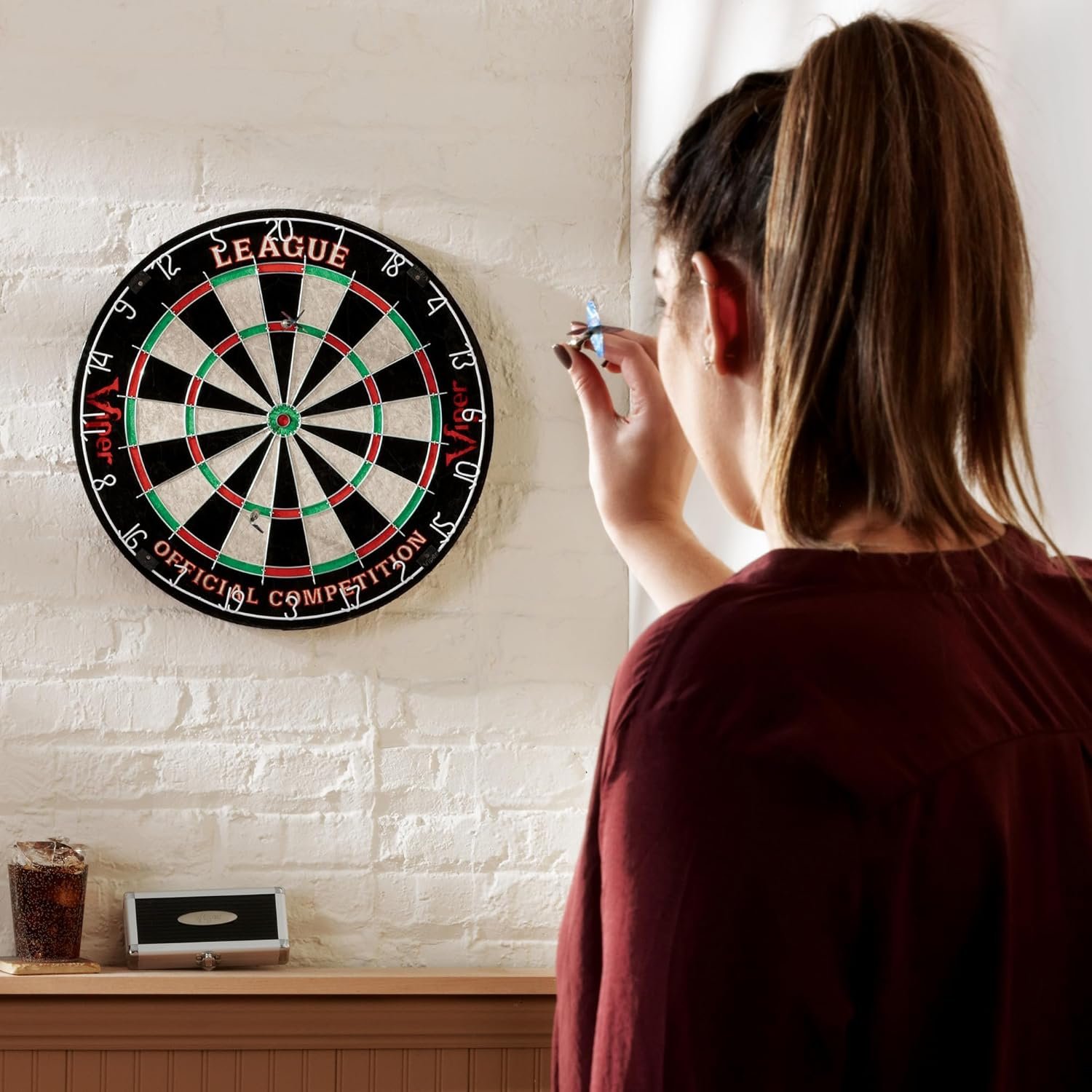 Viper League Pro is an official tournament size board, measuring 18″ in diameter and 1.5″ D; Dartboard accommodates both steel tip and soft tip darts