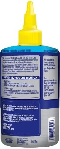 NO-WAX FORMULA. WD-40 BIKE Wet Chain Lubricant prevents friction damage and helps extend chain life for your bike. The no-wax formula will not build up inside chain links and the drivetrain.