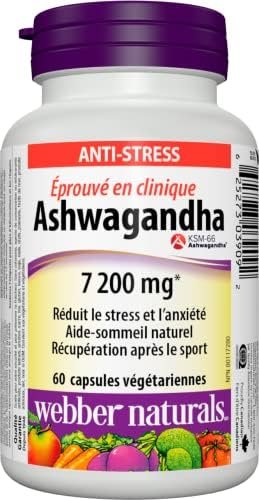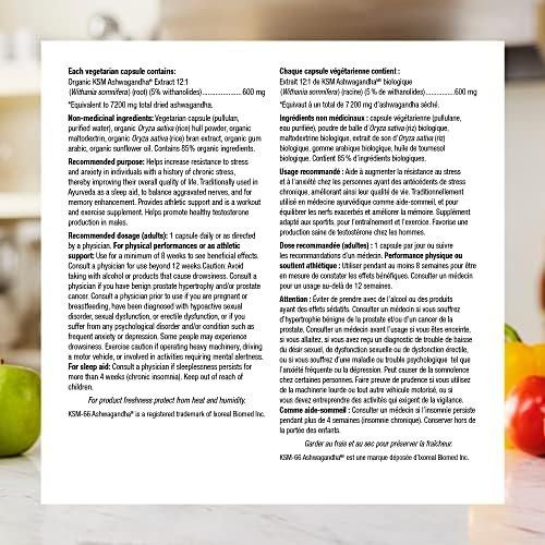 Ashwagandha from Webber Naturals provides organic KSM-66 Ashwagandha® to help increase resistance to stress and anxiety in individuals with a history of chronic stress. This herb is also used in herbal medicine as a natural, non-habit-forming sleep aid to balance aggravated nerves and enhance memory.Ashwagandha provides athletic support, helping to improve physical performance when combined with regular resistance training. This herb is also used in herbal medicine as a rejuvenative tonic and to relieve general debility, especially during convalescence and older age. In addition, it helps support libido and promote healthy testosterone production in males.Organic KSM-66 Ashwagandha is a full-spectrum extract made from only the ashwagandha root without the use of alcohol or chemical solvents. KSM-66 is one of the most clinically studied ashwagandha root extracts available, offering the same potency as used in multiple clinical studies.Ashwagandha from Webber Naturals is non-GMO and suitable for vegetarians and vegans. Only one capsule per day provides a 600 mg dose equivalent to 7200 mg of dried ashwagandha, standardized to 5% of withanolides.