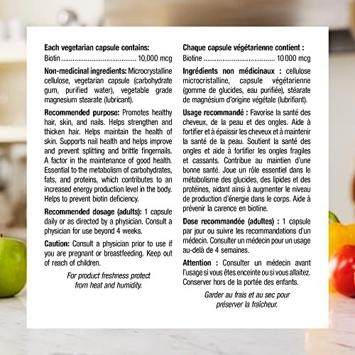 One-Per-Day: Extra Strength Biotin 10,000 mcg from Webber Naturals is a convenient, one-per-day vegetarian formula that can help support energy metabolism and the health of hair, nails, and skin