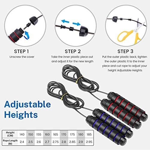 【ADJUSTABLE JUMP ROPE】- The skipping rope can be quickly and easily adjustable from 115 inch down to your desired length in 3 steps. It is suitable for all ages and heights.
